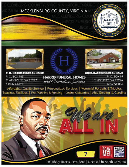 This event was a wonderful celebration of Dr. Martin Luther King, Jr.'s life. It served as a tribute to Dr. King's teachings, and attendees thoroughly enjoyed themselves. Dr. Cynthia Mabry-King delivered the keynote address, emphasizing Dr. King's legacy and the importance of remaining All In! Other speakers included Reverend Edgar Young, Mr. Glenn Reyes, and Ms. Marsha Seamans, with prayers led by Reverend Waverly Brown, Sr. and Reverend Earl Terry. Music was provided by Mr. Donnie Tucker. The True Worship Praise Dancers, under the direction of Pastor Veronica Hardy, offered captivating musical dance praise performances. The complete program and event photos are available below. Any questions can be sent via email at infor@naacpmeckcova.org.